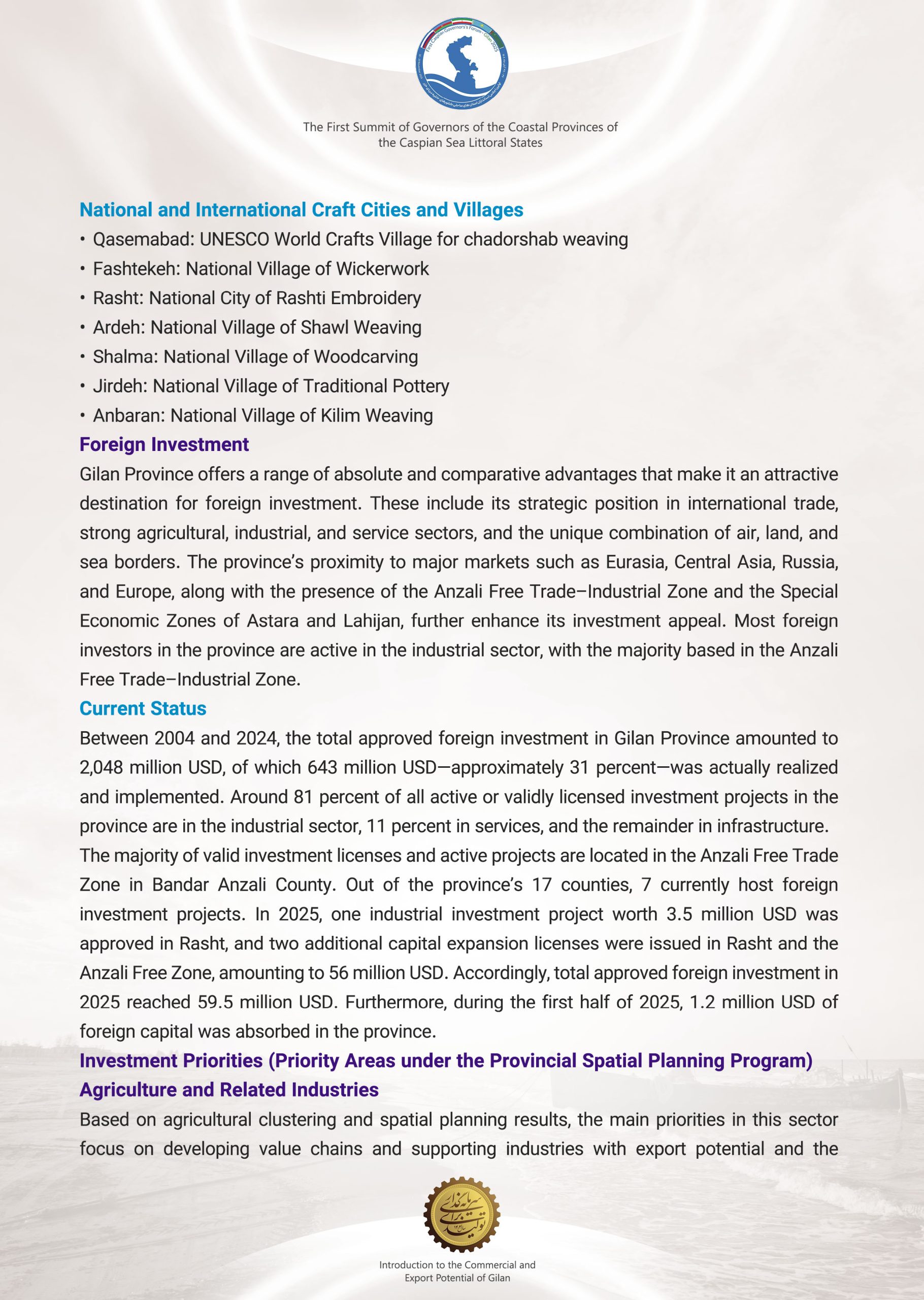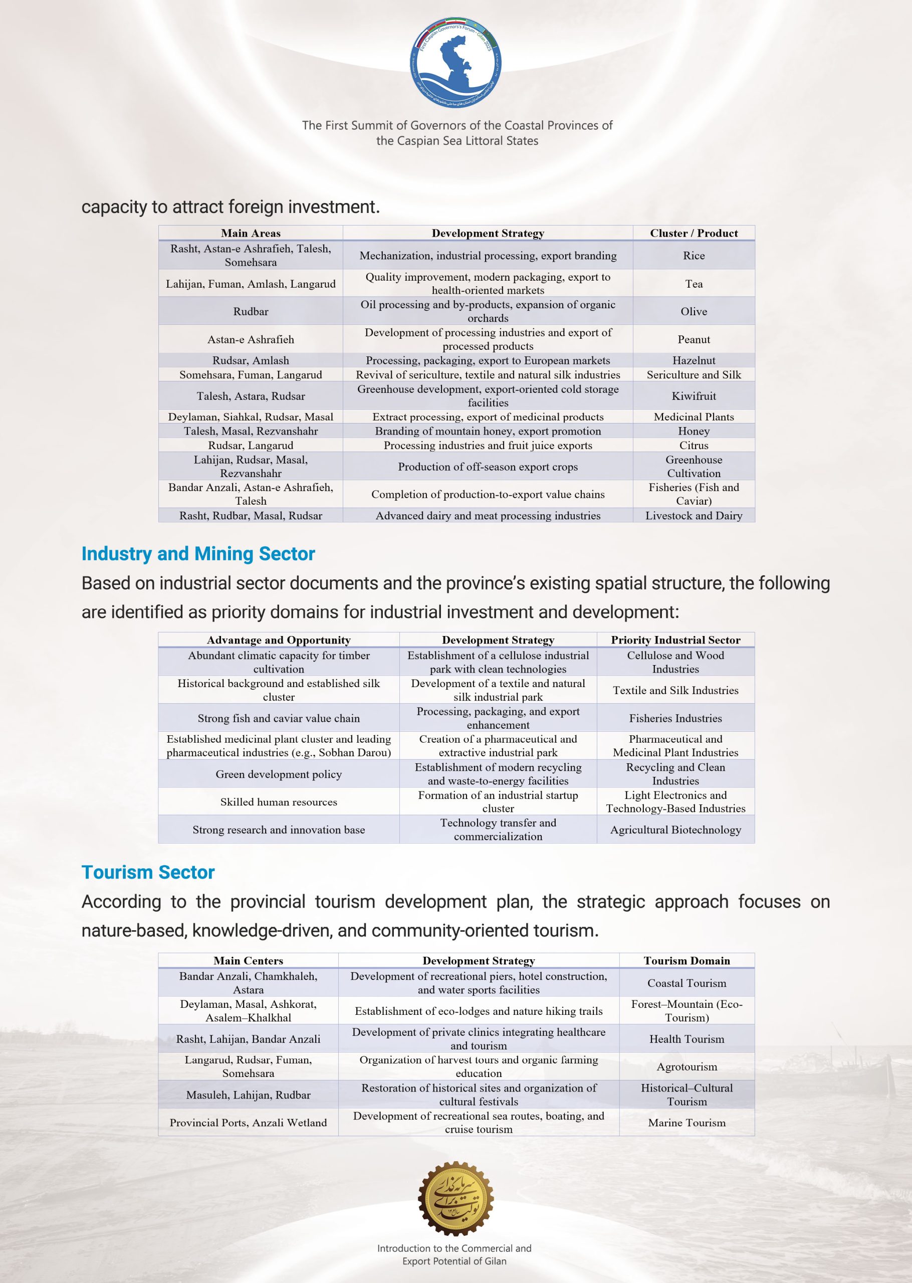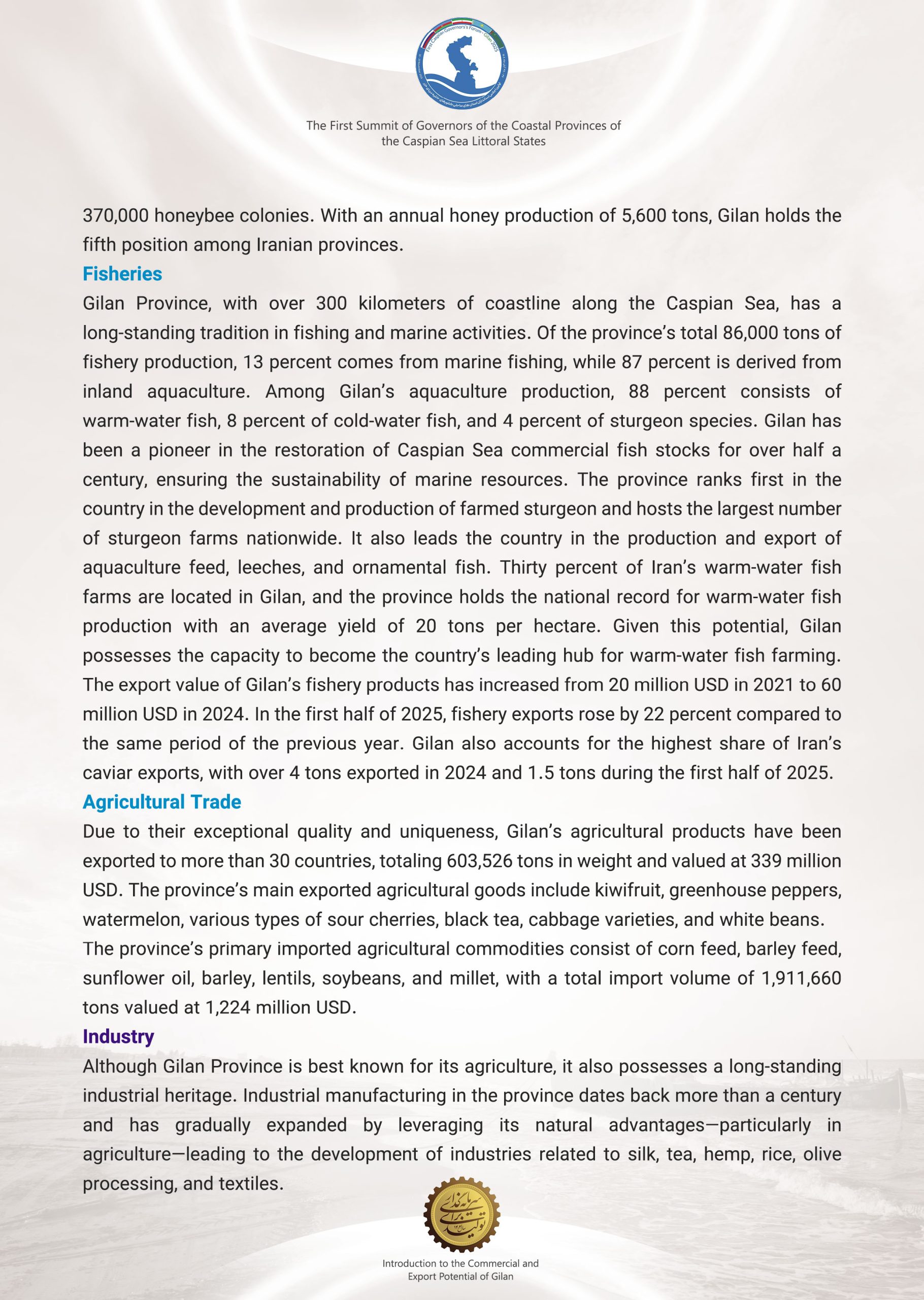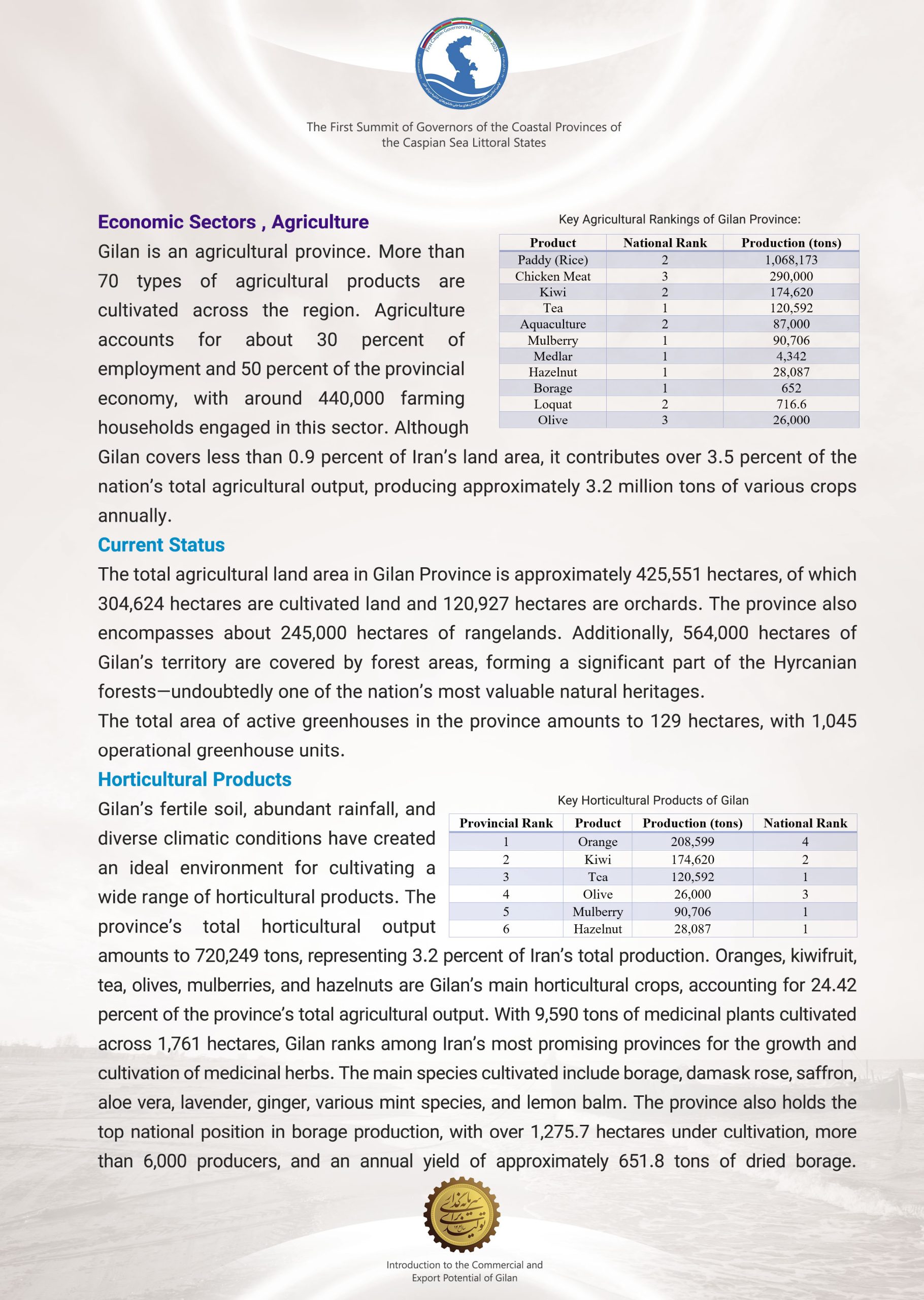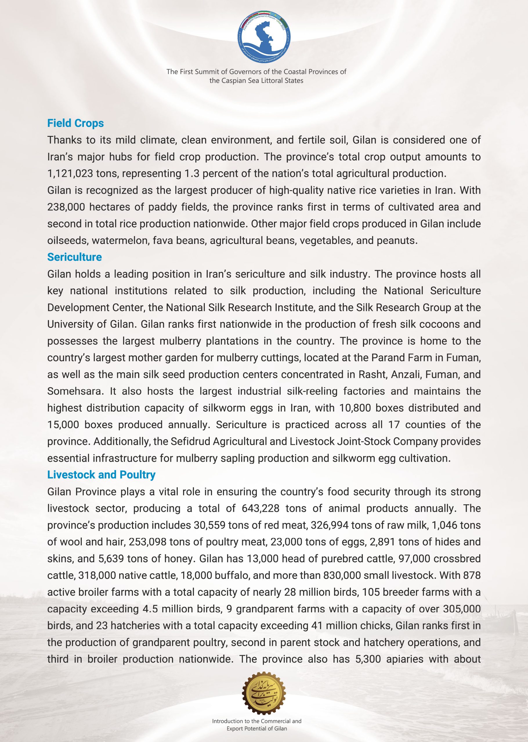 The advantages of Gilan Province, taking into account the climatic and geographical conditions and situations in the three sectors of