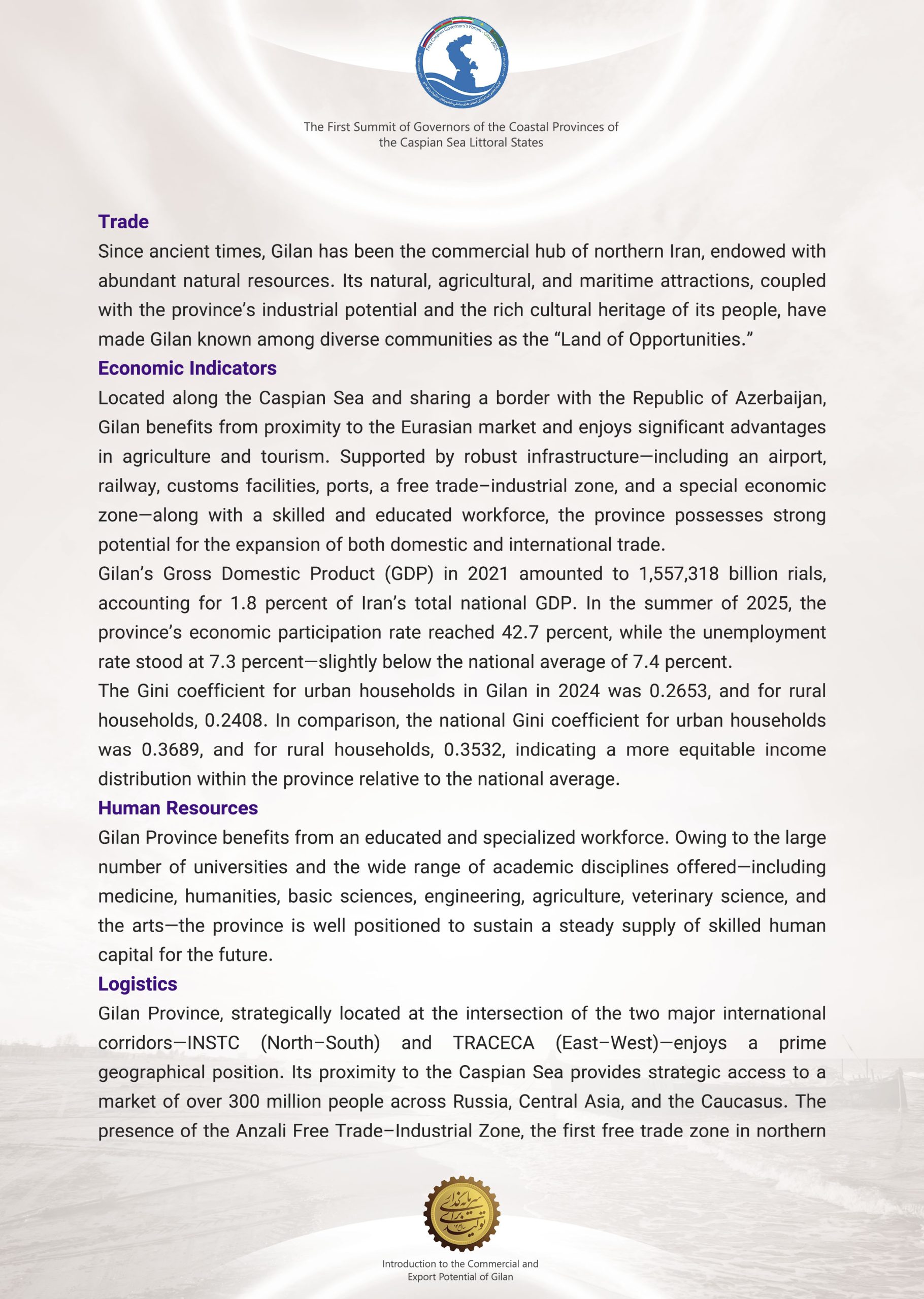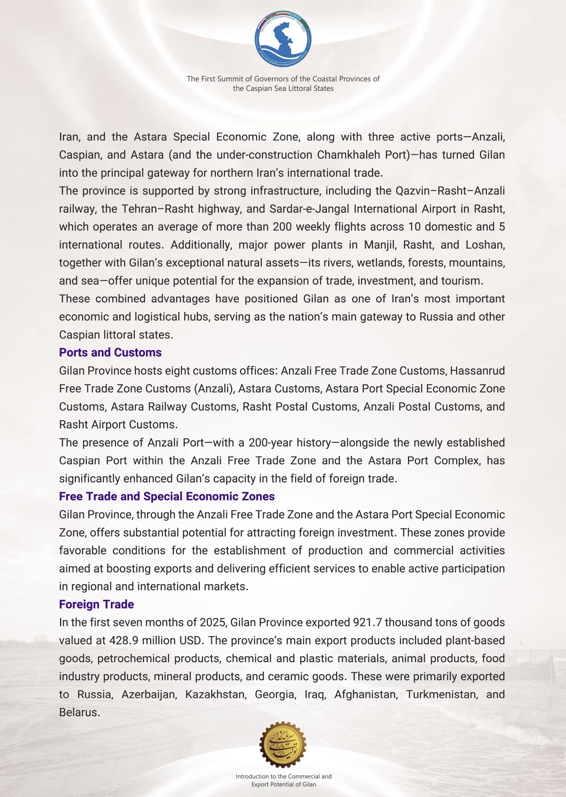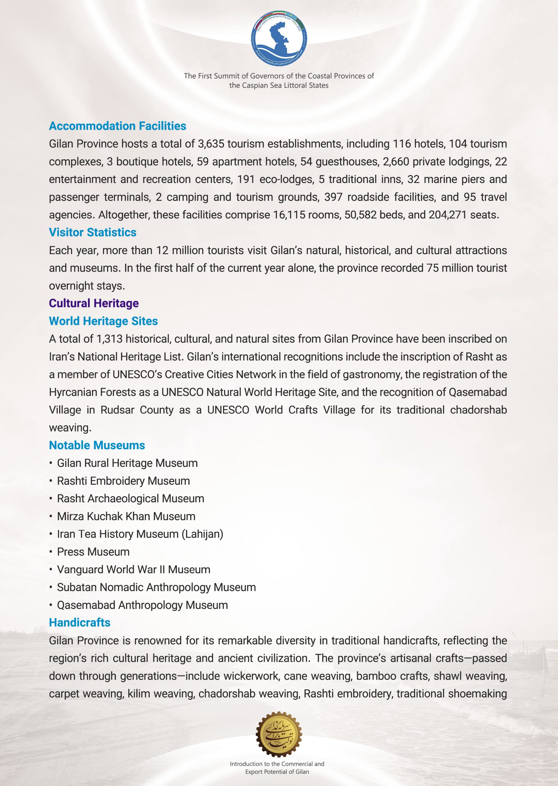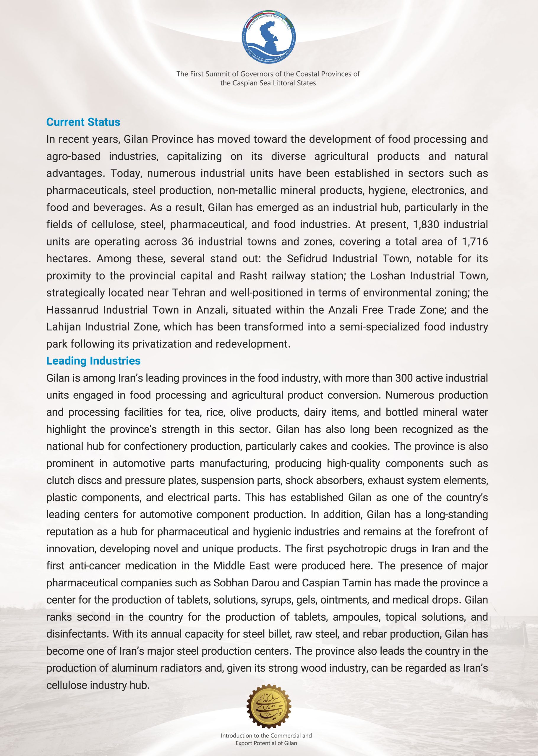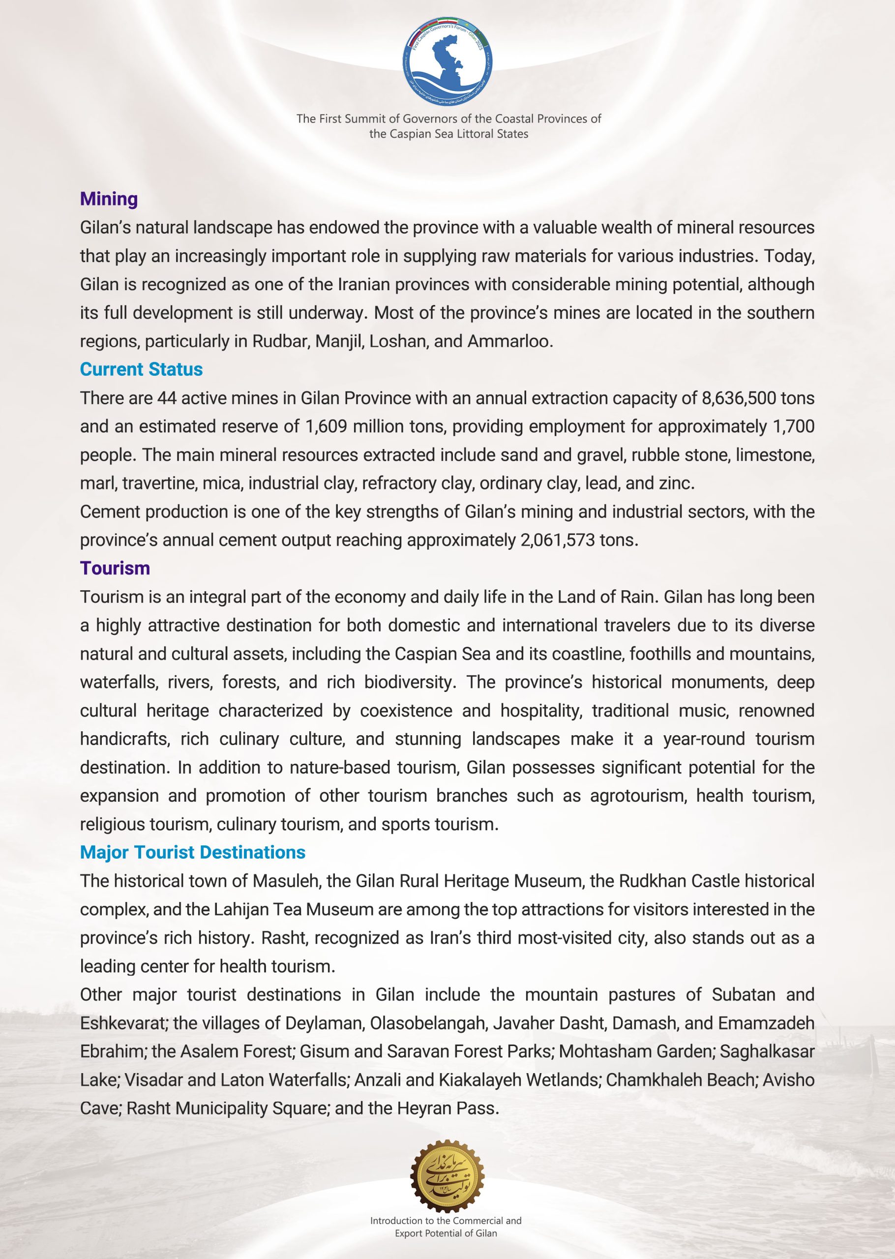 The advantages of Gilan Province, taking into account the climatic and geographical conditions and situations in the three sectors of